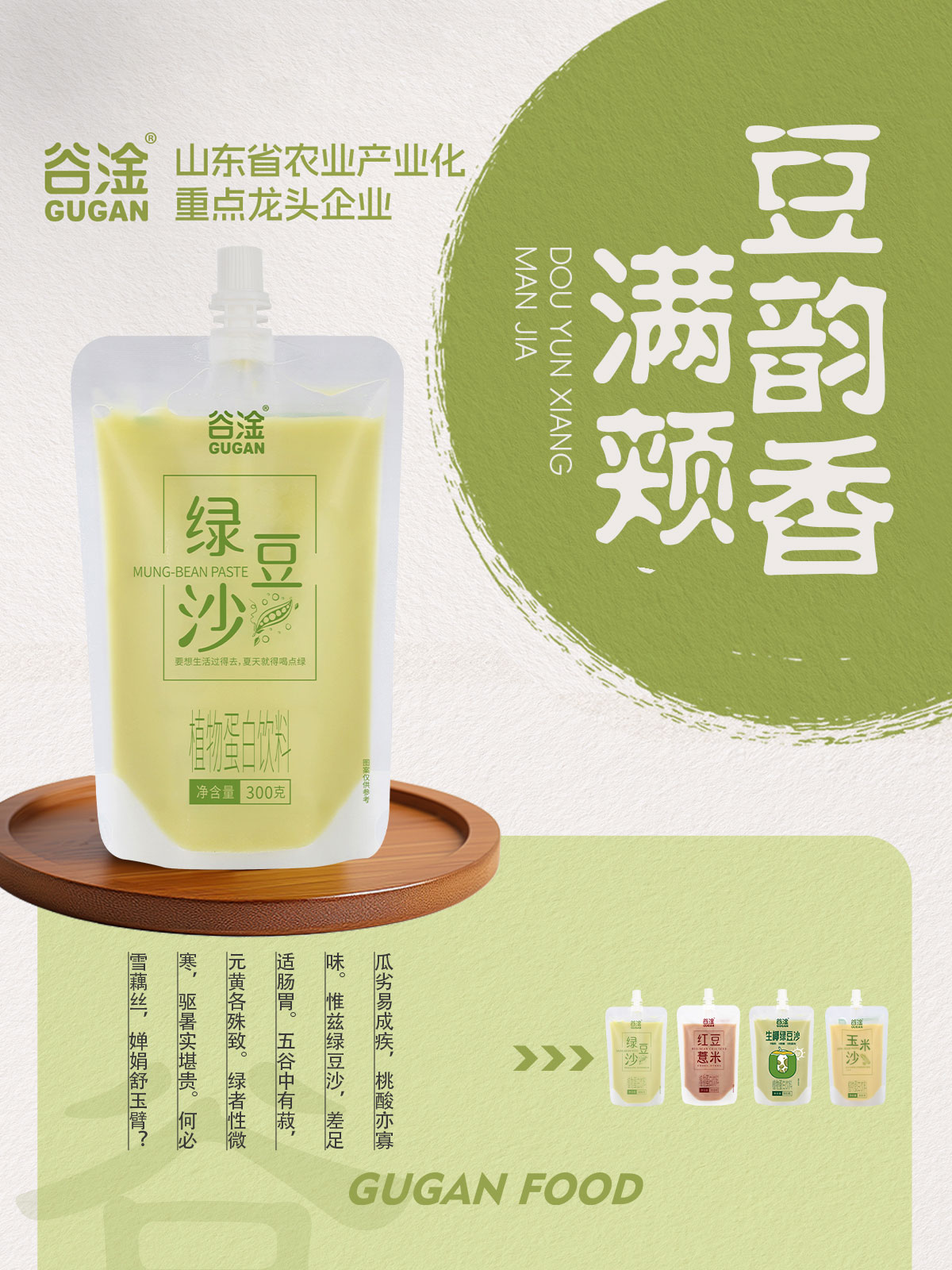 山東谷淦食品有限公司總部位于山東省淄博市,是一家集生態化農業種植、中草藥種植、農副產品加工、商貿物流、營銷服務于一體的農業產業化省級重點龍頭企業,從生產到終端,構建農工商高度融合、一二三產業相互支撐的現代化經營體系。集團公司主要產品包括谷物飲料、植物蛋白飲料、八寶粥、奶昔及果汁飲料、中式養生飲品等系列方便食品,旗下擁有“谷淦”、“福粥來”、“頤慕”、“甘噸噸”、“妃生元”、“植豆說”等眾多品牌。
